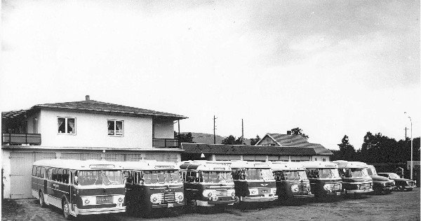 Foto: Norborg Bilruter A/S' anlegg og vognpark i 1965.